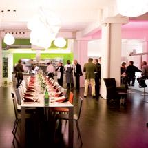Innovative High-Tech-Küche Eingebettet im „planbar4“, der Ideenschmiede für Inneneinrichtung, ist das „Food & Flavour“ mit dem Neusten und Innovativsten ausgestattet, was eine ambitionierte Gastronomie ausmacht. Beim Kochkurs können sich Interessierte unter fachkundiger Anleitung in der High-Tech-Küche austoben. Bei Veranstaltungen aller Art finden im Speise-, Bar- und Loungebereich bis zu 120 Personen Platz. Kochkurse - Geheimnisse guten Geschmacks Selbstständigkeit und Eigeninitiative sind gefragt – auch wenn mal was schief geht. Denn Kochen lernt keiner über Nacht. Egal ob für Business oder Privates – im „Food & Flavour“ sind die Voraussetzungen optimal: vernünftiges und formschönes Equipment, professionelle Hilfe und viel Raum für die eigene Kreativität der Kochkursteilnehmer. Fangfrischen Fisch filetieren, Krustentiere richtig knacken und aus einfachen Fonds phantastische Saucen zaubern, sind einige der kulinarischen Kenntnisse, die „Food & Flavour“ vermittelt. Entspannen Sie bei einem Kochkurs mit Gleichgesinnten und erleben Sie ganz nebenbei die Geheimnisse guten Geschmacks. Businesskochkurse Teambildung beim Tournieren und Tranchieren Kochen ist „in“. Auch Angestellte und Entscheider tauschen den Bürostuhl gegen die Bistroschürze und tummeln sich hinter dem Herd. Bei der gemeinsamen Zubereitung eines Menüs finden sie zusammen. Teambildung nennt man das und das ist in Couchingkreisen sehr angesagt. Hungrig auf inspirierende Ess-Erlebnisse? Im „Food & Flavour“ feiern Freunde kulinarischer Genüsse Küchenparties vor einer großartigen Kulisse. Präsentationen und alle anderen Firmenveranstaltungen und Feiern finden in dem loftartigen Raum eine besondere Art von Exklusivität. Gerne übernehmen wir auch gleich die komplette Eventorganisation. Klangvolles kommt auf Wunsch von unserer Gala-Band.