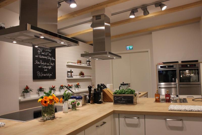 Die neue Kochschule lockt mit einem ganz besonderen Ambiente und einer hochwertigen Ausstattung passionierte Hobbyköche und genussliebende Amateure an den Herd. Zusammen mit unseren Köchen stellen Sie die leckersten Gerichte her. Bei uns dürfen Sie aktiv mitkochen. "Learning by doing" - so macht es am meisten Spaß! Verschiedene Themenkurse wie z. B. Fleisch perfekt gebraten, Cucina Toskana, Pasta selbst gemacht, Sushi oder auch Pralinenkurs stehen zur Auswahl.Ein Kochkurs dauert vier bis fünf Stunden. Jeder Gang wird gemeinsam gekocht und danach gemeinsam mit dem Koch gegessen. Ein umfangreiches Skript zum Nachlesen und Nachkochen können Sie mit nach Hause nehmen. Leihweise erhalten Sie eine Kochschürze.
